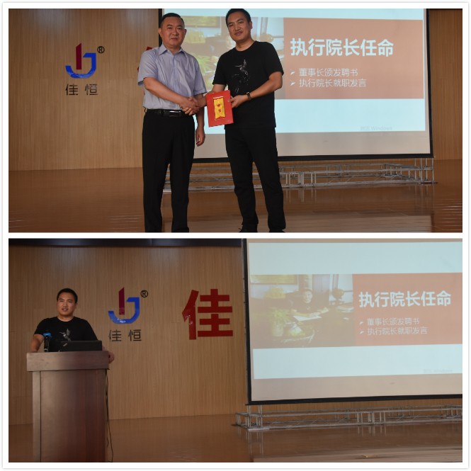 啟動儀式上,佳恒集團董事長金波向總經理楊繼頒發聘書,任命其為商學院執行院長。楊繼發表了就職發言,表示:將擔負責任,做好表率,堅持學習,帶頭把學習到的知識應用到工作中,開展好“學習型企業”建設。